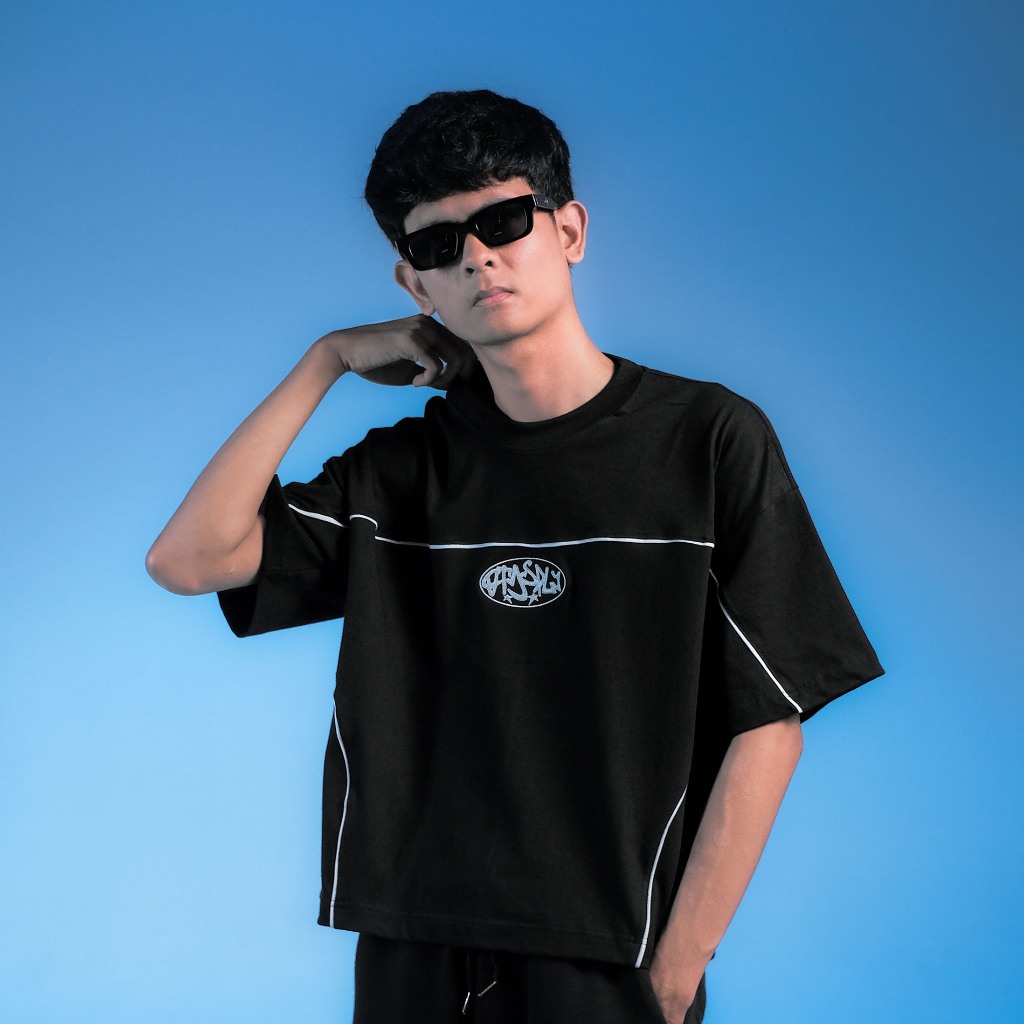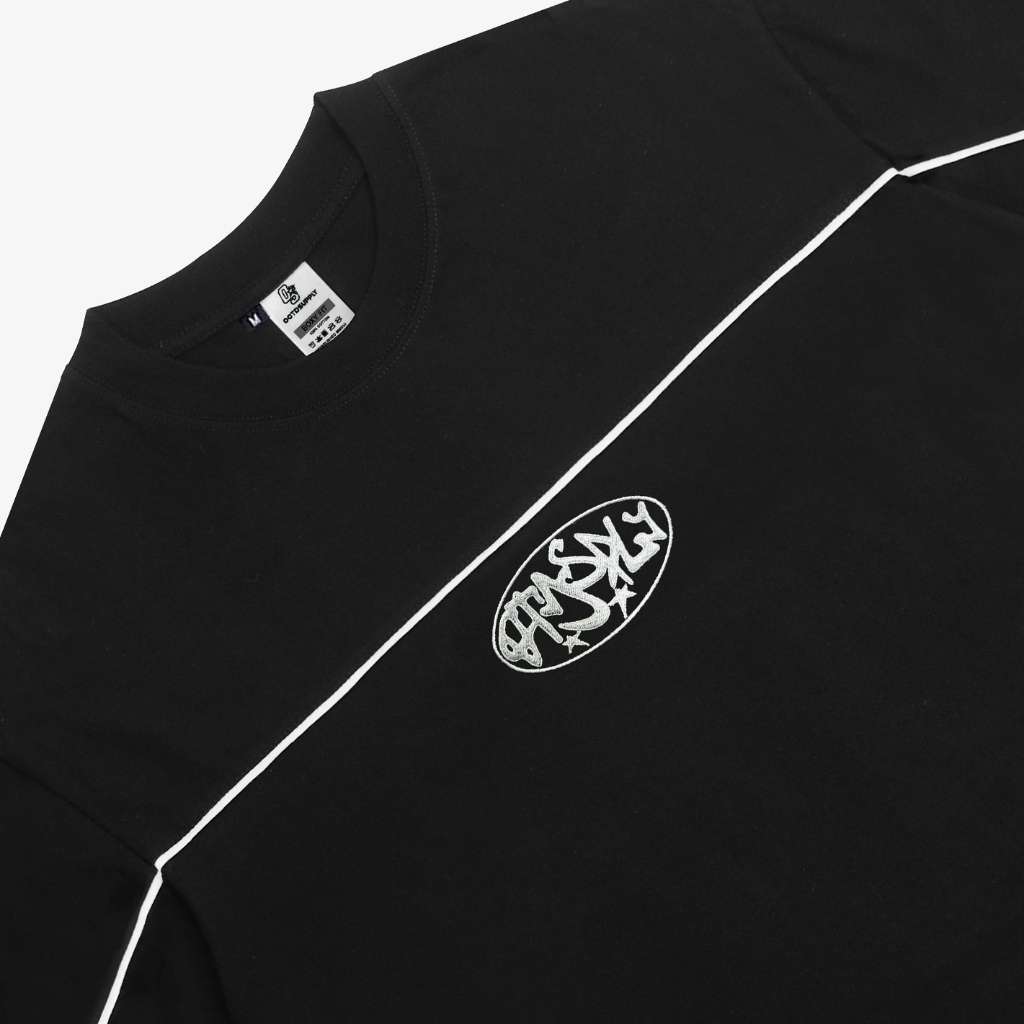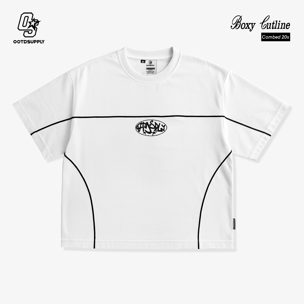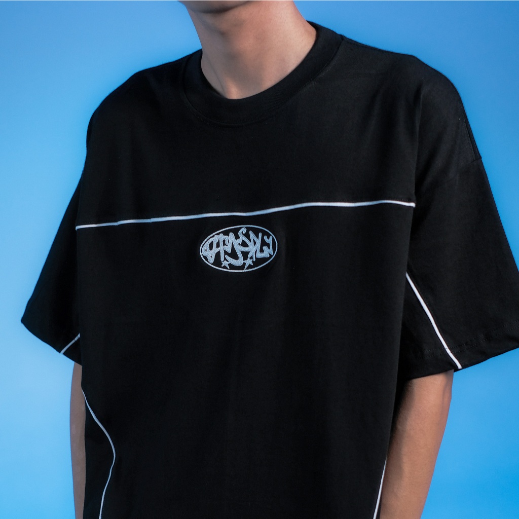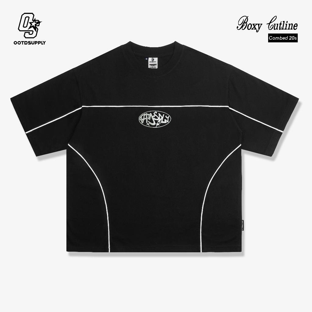Ootdsupply Oversize Boxy Cutline Circle Embroidery Black & White L Tshirt Boxyfit L Kaos Boxy | Atasan Boxy | Ovz-Bx-Ce