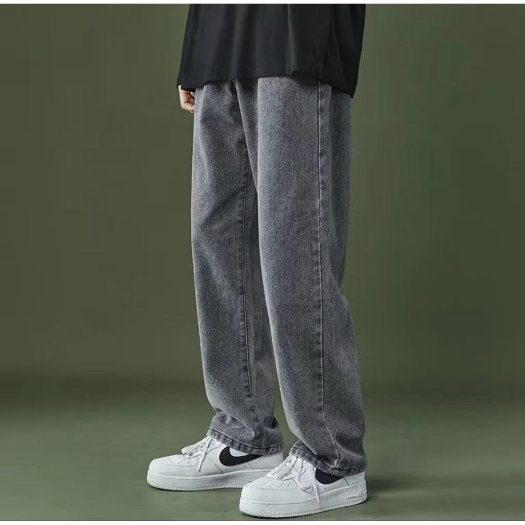 Celana Baggy Jeans Panjang Retro Abu Whisker Loose Panjang Nyaman Ukuran Jumnbo Murah Gratis Ongkir