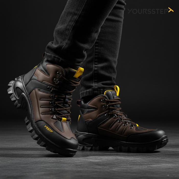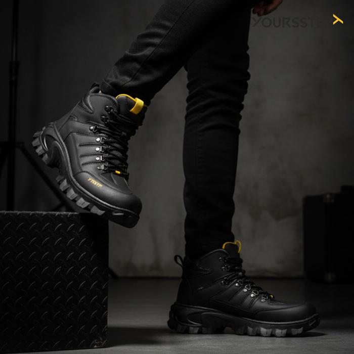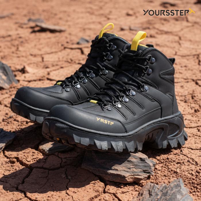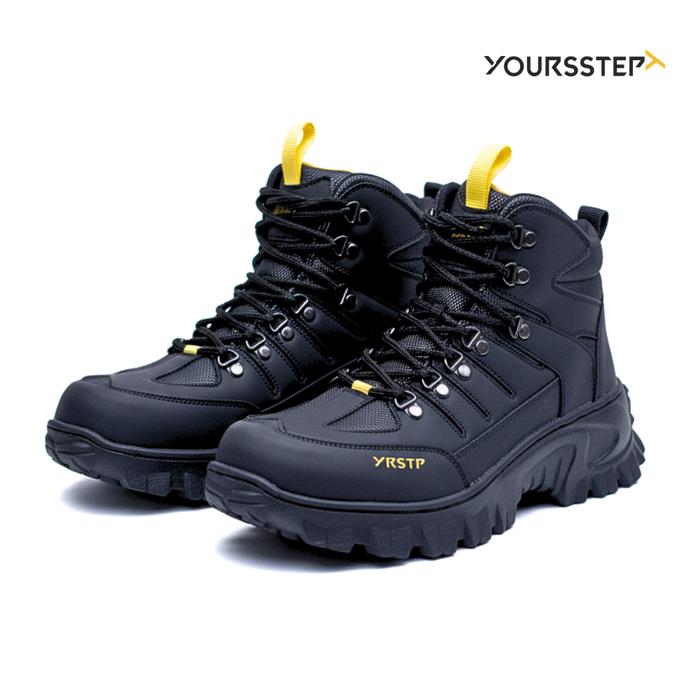 Sepatu Safety Pria Yoursstep Jaguar Boots Outdoor Hiking Leather Syntetic Premium - Hitam, 38