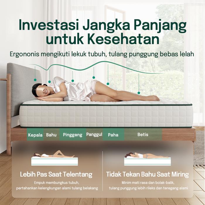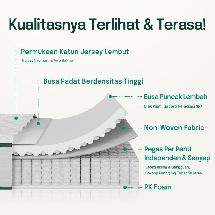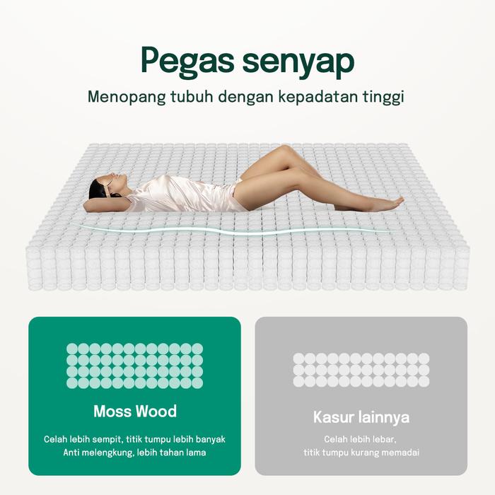 MOSSWOOD KASUR SPRINGBED HOTEL PREMIUM ANTI GOYANG TAHAN LAMA 20CM HIGH DENSITY ANTI AIR BONUS BANTAL GRATIS - 90 X 200 X 20 CM