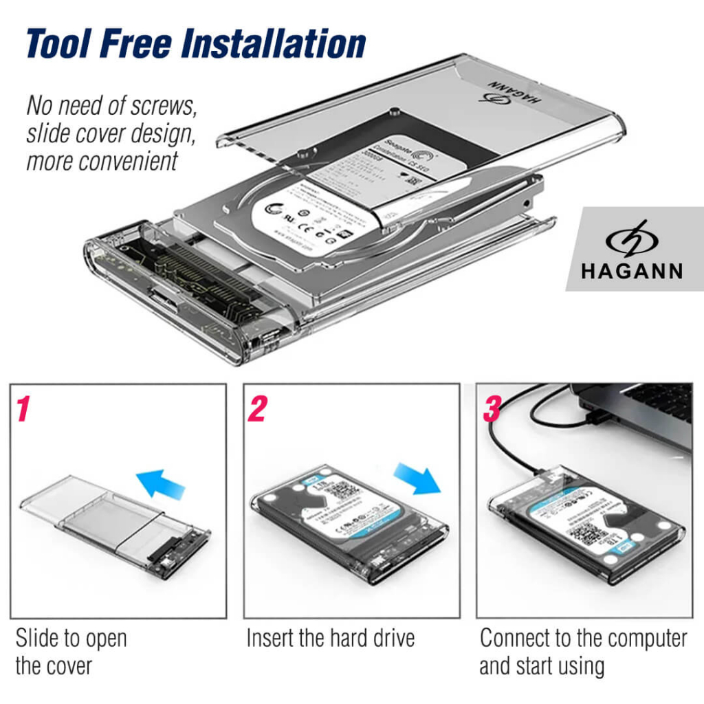 HAGANN HDA-E30 Case Hardisk External USB 3.0 | HDD Enclosure 2.5" SATA | Casing Harddisk dan SSD SATA – Garansi 1 Tahun