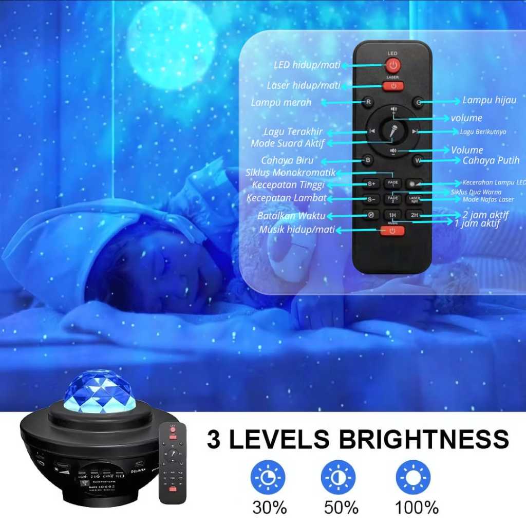 Lampu Proyektor Langit tidur Malam Berbintang 2 In 1 Lampu Tidur