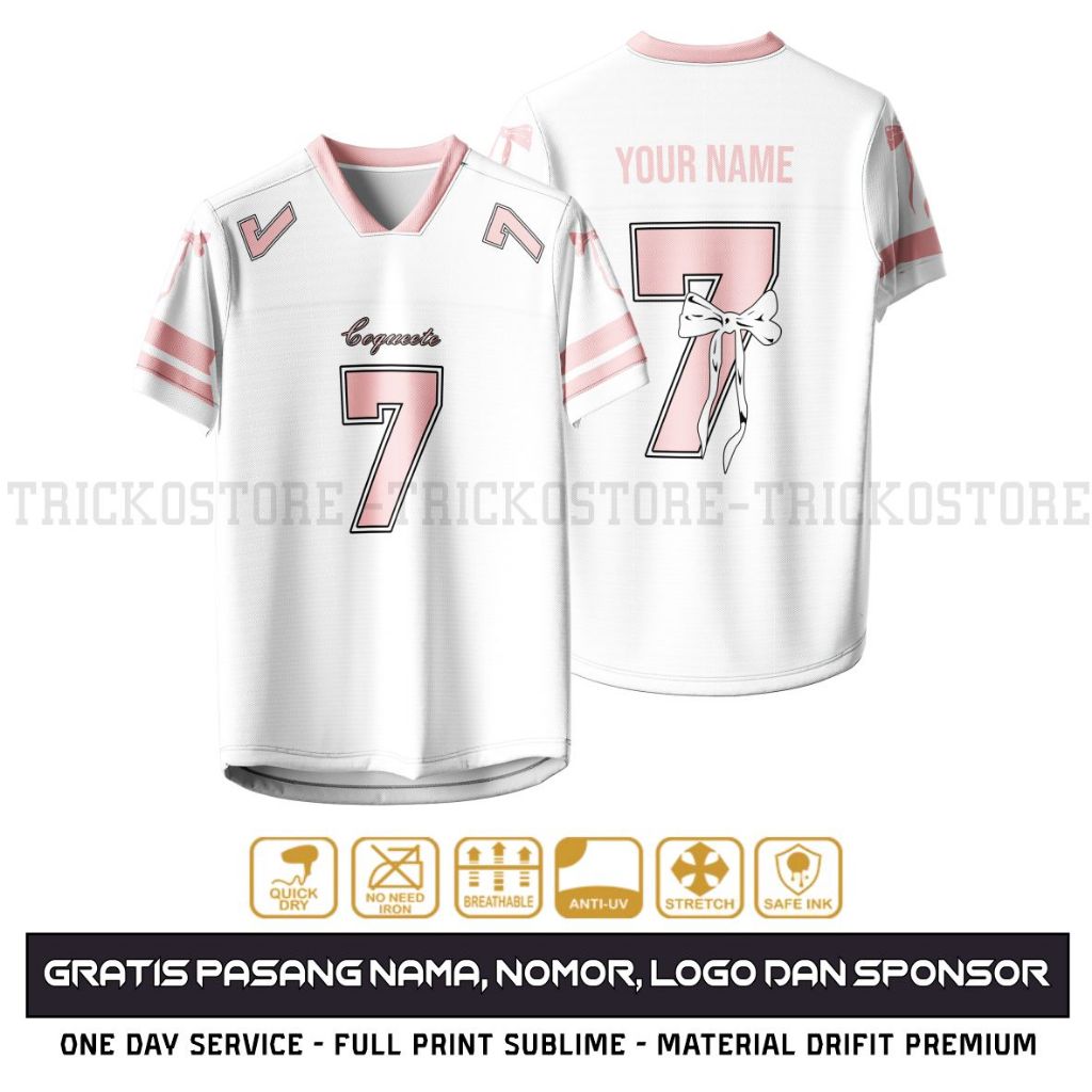 JERSEY ATASAN COQUETTE PINK AND WHITE KOREAN GRATIS PASANG NAMA DAN NOMOR PUNGGUNG BEBAS REQUEST