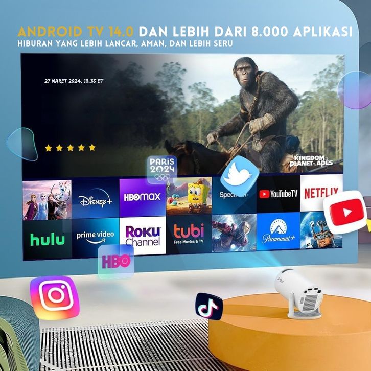 [Mall]Gimbal 3 Proyektor LCD Android 14 720P Auto Keystone XGODY