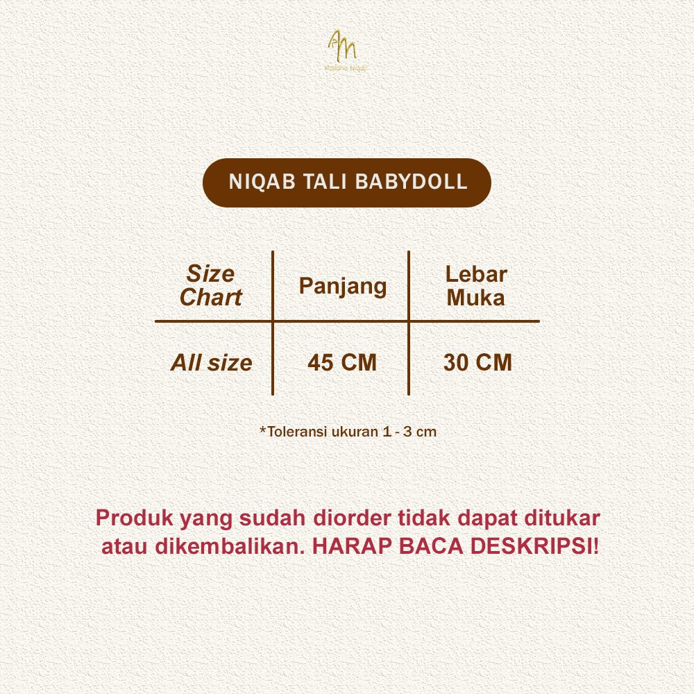 Maslaha Niqab l Niqab Tali 2 Layer Maslaha l Cadar Tali Babydoll Tanpa Jahitan Dibawah Mata