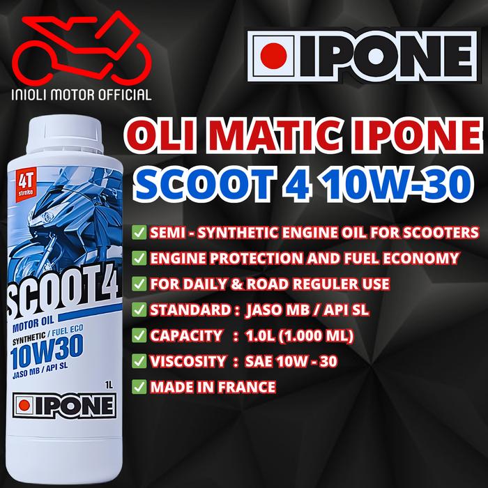 OLI IPONE SCOOT 4 10W30 1L SYNTHETIC OLI MESIN IPONE MOTOR MATIC METIK IMPORT PREMIUM 10W-30 1 LITER SCOOT MATIC MATIK
