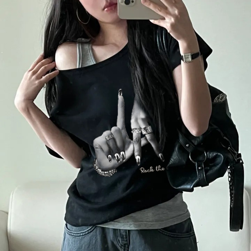 KAOS ATASAN TANGAN PENDEK WANITA YK2 STYKE AMERICAN SABRINA RETRO OVERSIZE T SHIRT