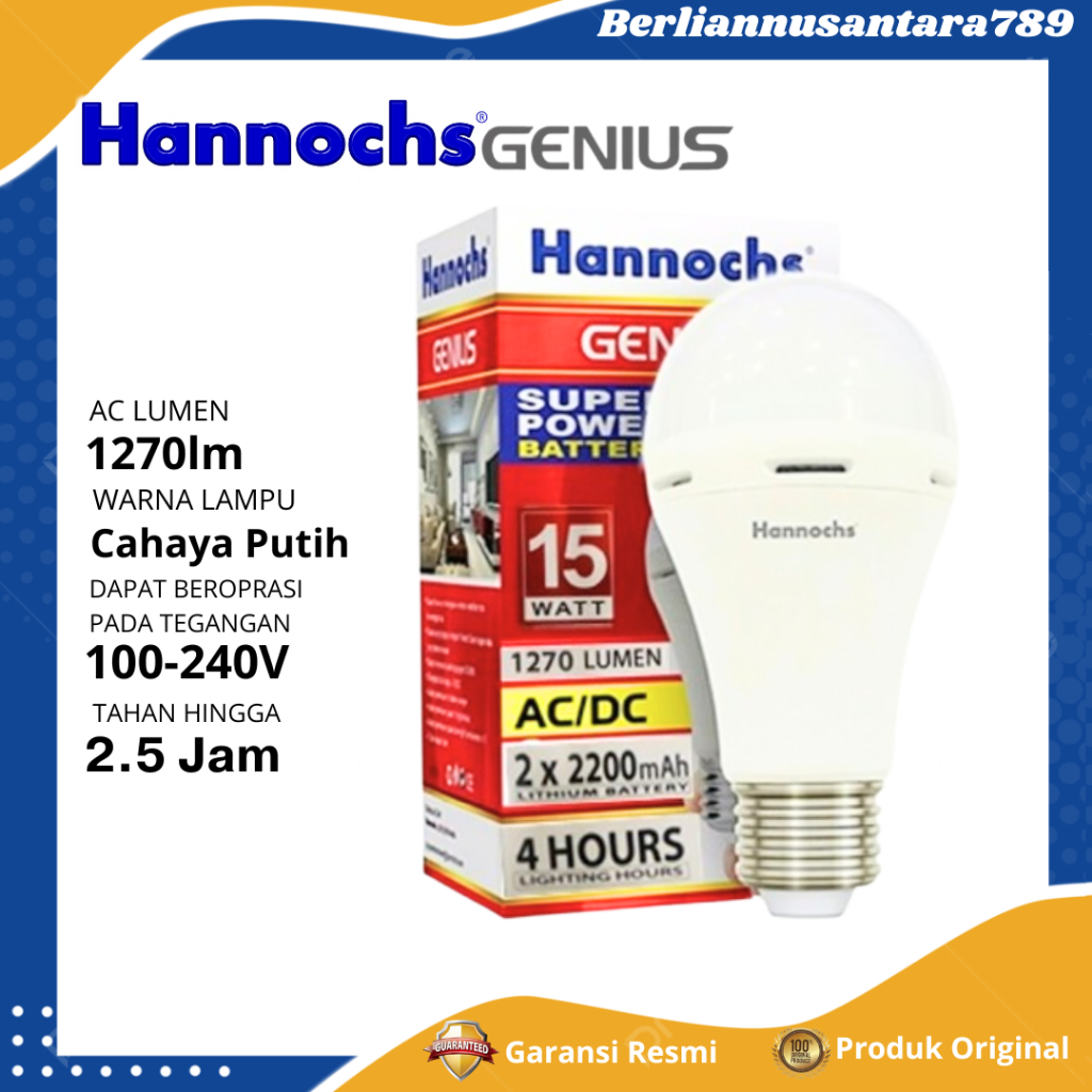 Hannochs Bohlam Lampu Emergency LED Genius 15WATT Cahaya Putih Cool Daylight - GARANSI RESMI
