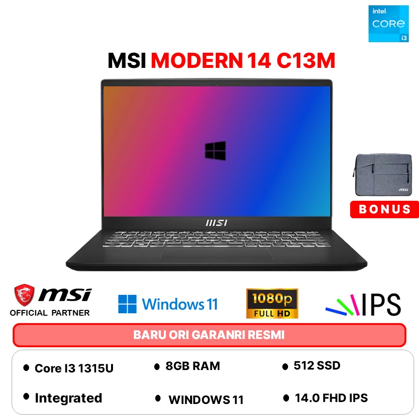 MSI MODERN 14 C13M INTEL CORE I3 1315U - RAM 8GB 512GB WINDOWS11 14.0FHD BLIT IPS
