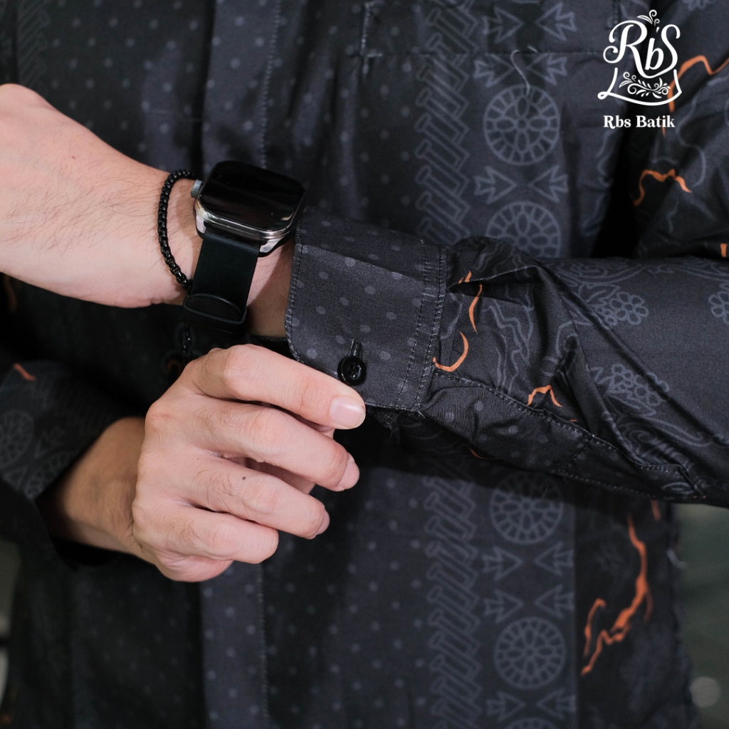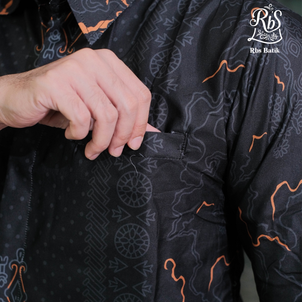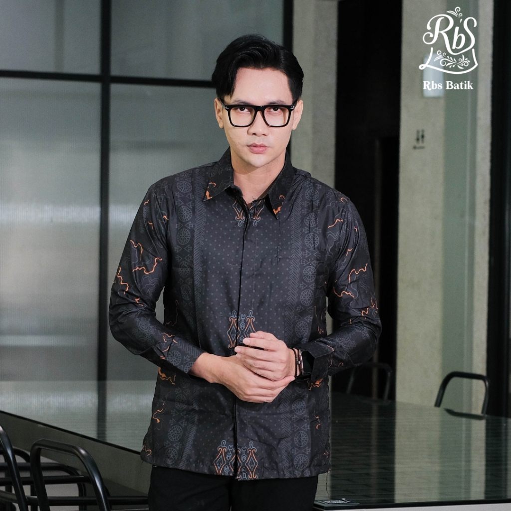 Rbs Batik - Kemeja Batik Pria Slimfit Lapis Furing Warna Hitam Widura