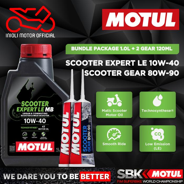 OLI MOTUL SCOOTER EXPERT LE 10W40 1L & 2 SCOOTER GEAR 80W90 120ML PAKET BUNDLE HEMAT OLI MOTUL IMPORT PREMIUM SEMI