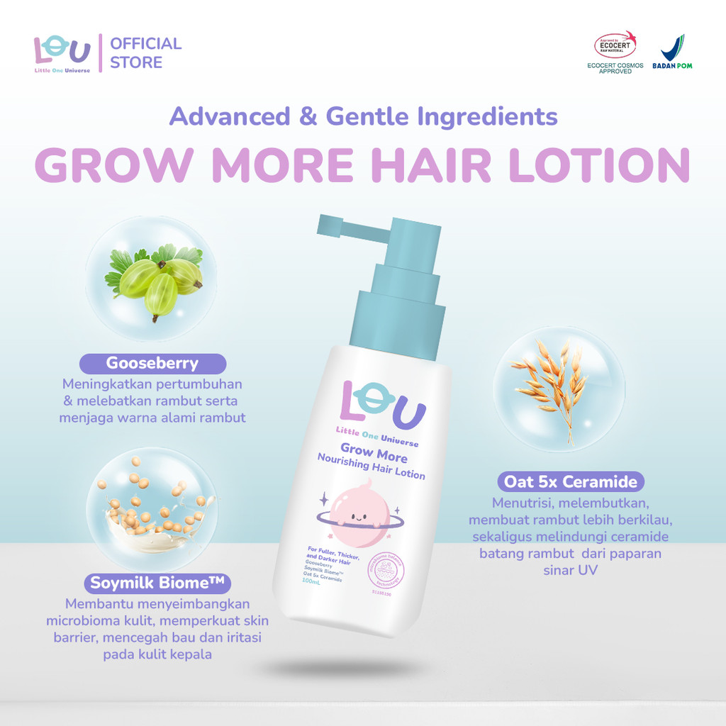 LOU Grow More Nourishing Hair Lotion 100ml - Penumbuh Rambut Bayi - Menumbuhkan, Melebatkan, Menghitamkan Rambut dalam 1