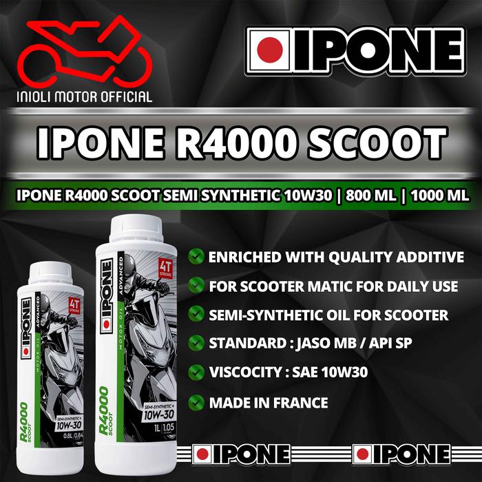 OLI IPONE R4000 SCOOT 10W30 SEMI SYNTHETIC OLI MESIN IPONE MOTOR MATIC METIK IMPORT PREMIUM 10W-30 800ML 1000ML 0.8ML