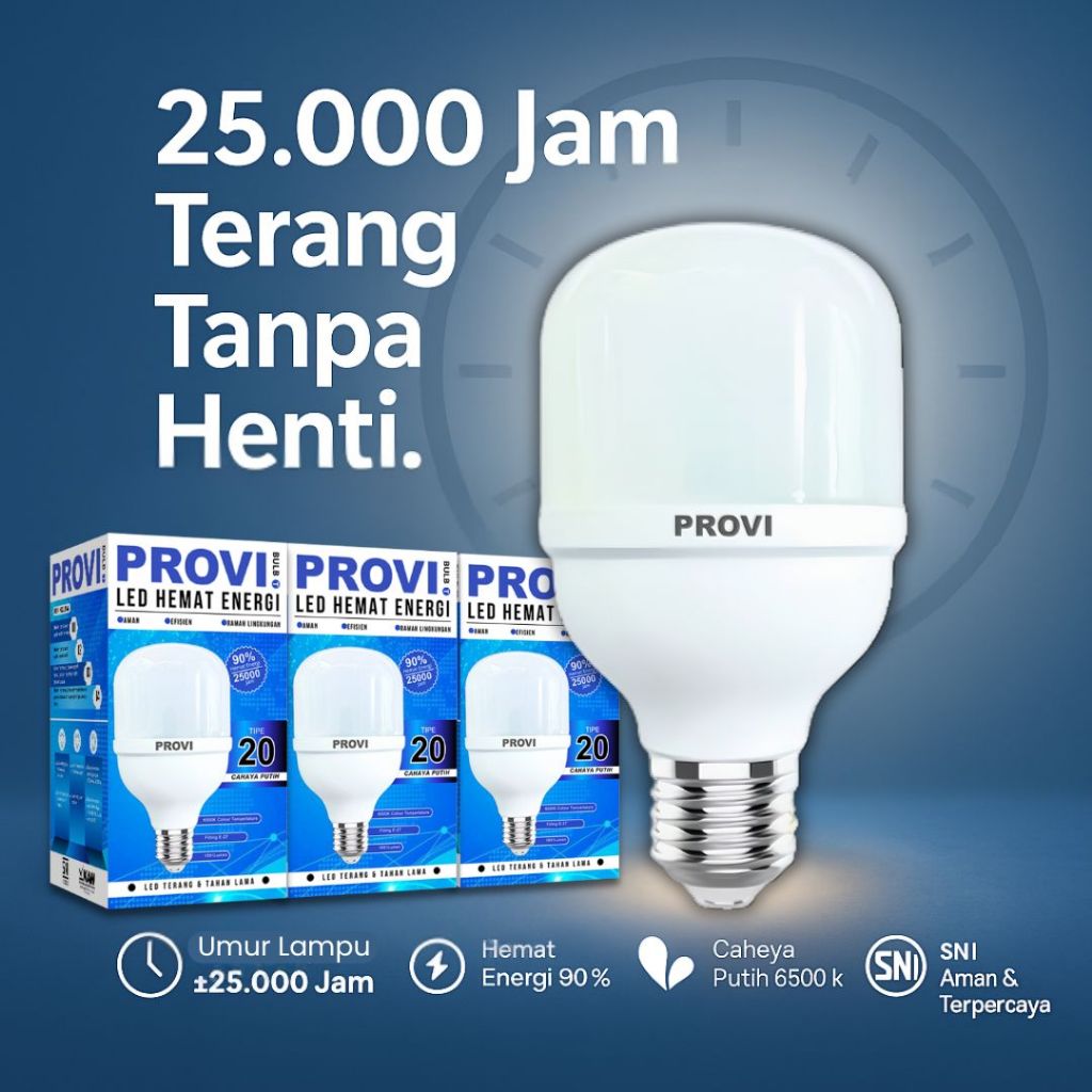 Lampu LED Tabung Jumbo Bohlam PROVI TIPE 20 Cahaya Putih Paket isi 3pcs