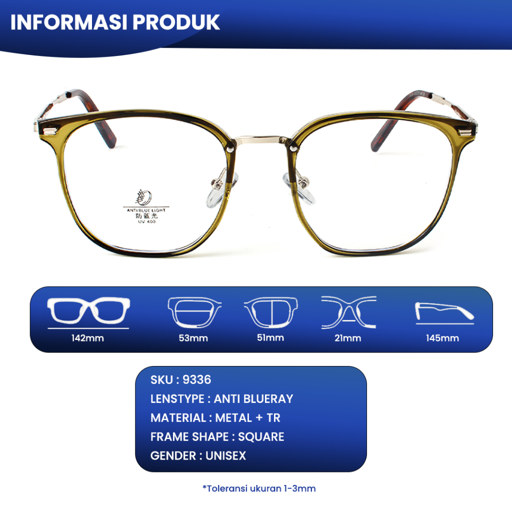 IOOI Eyewear - Frame Kacamata Kotak Bahan Metal TR Bisa Custom Lensa kacamata minus photocromic pria wanita original