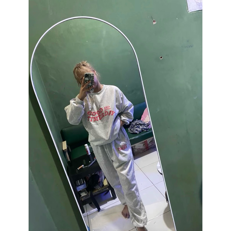 One Set Setelan Celana Good Times Sweater Wanita Murah Gratis Ongkir