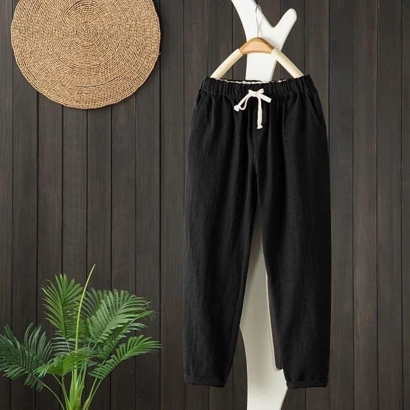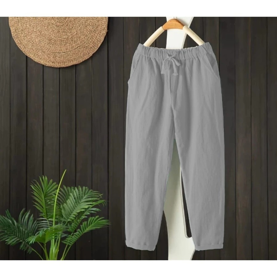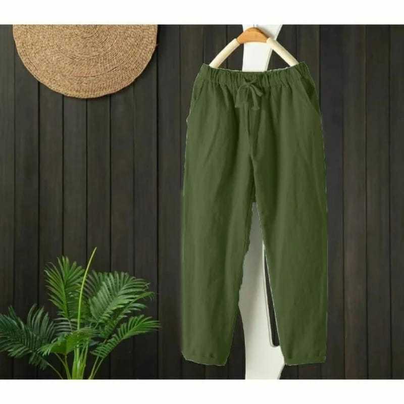 Celana Panjang Pria Bahan Linen Premium Pinggang Full Karet Terbaru Murah Gratis Ongkir