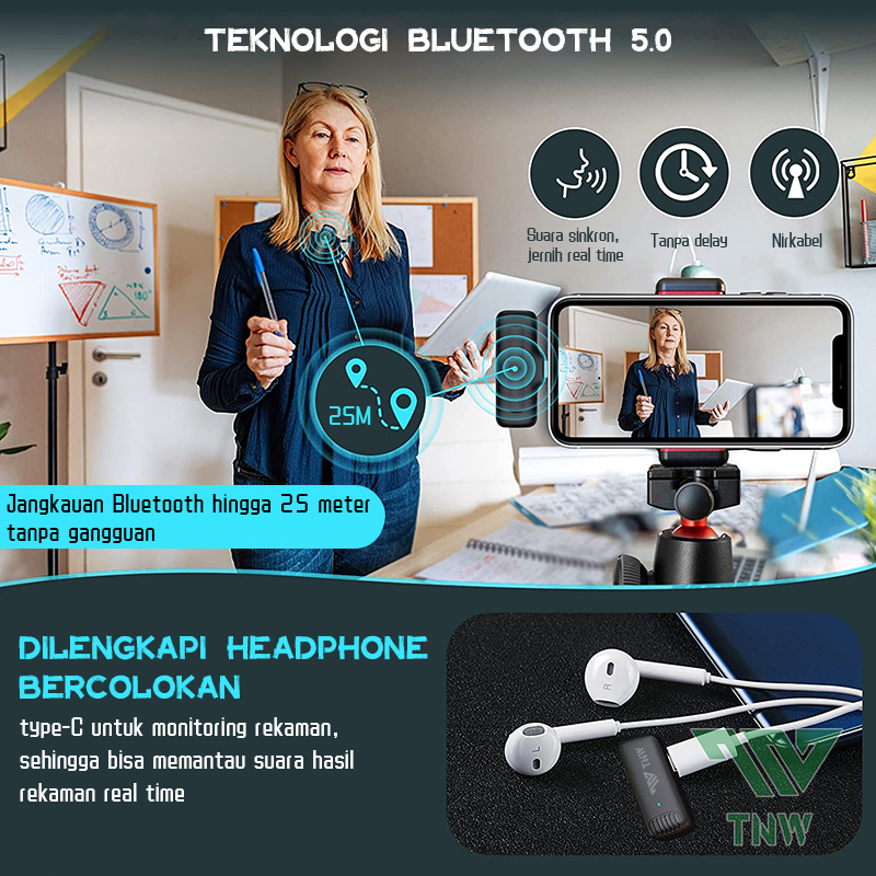 TNW-X8 Mikrofon Nirkabel Lavalier dengan Kotak Pengisi Daya Wireless Microphone Mikrofon Lapel Mini Microphone Mic clip on untuk YouTube TikTok Facebook Live Streaming Vlogging