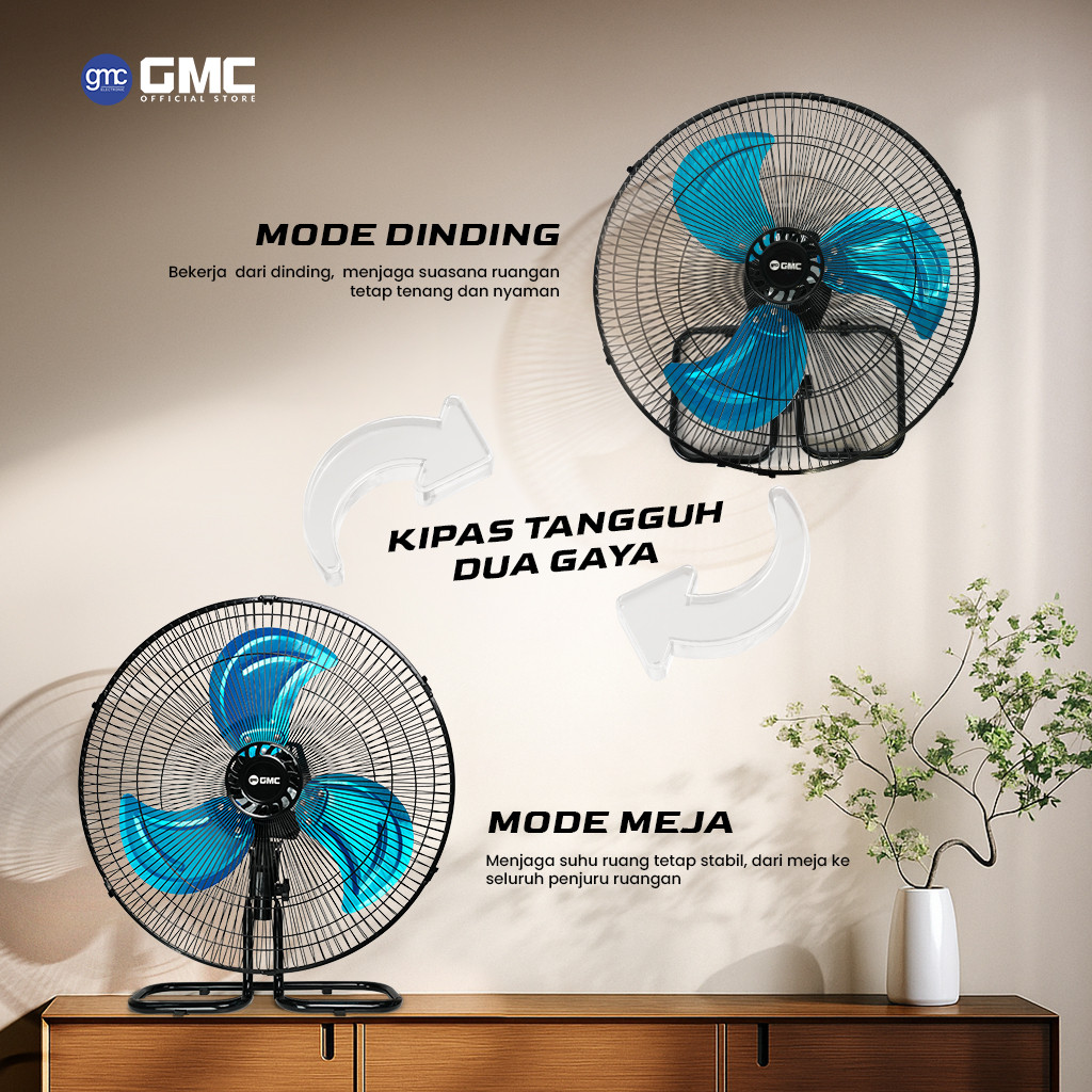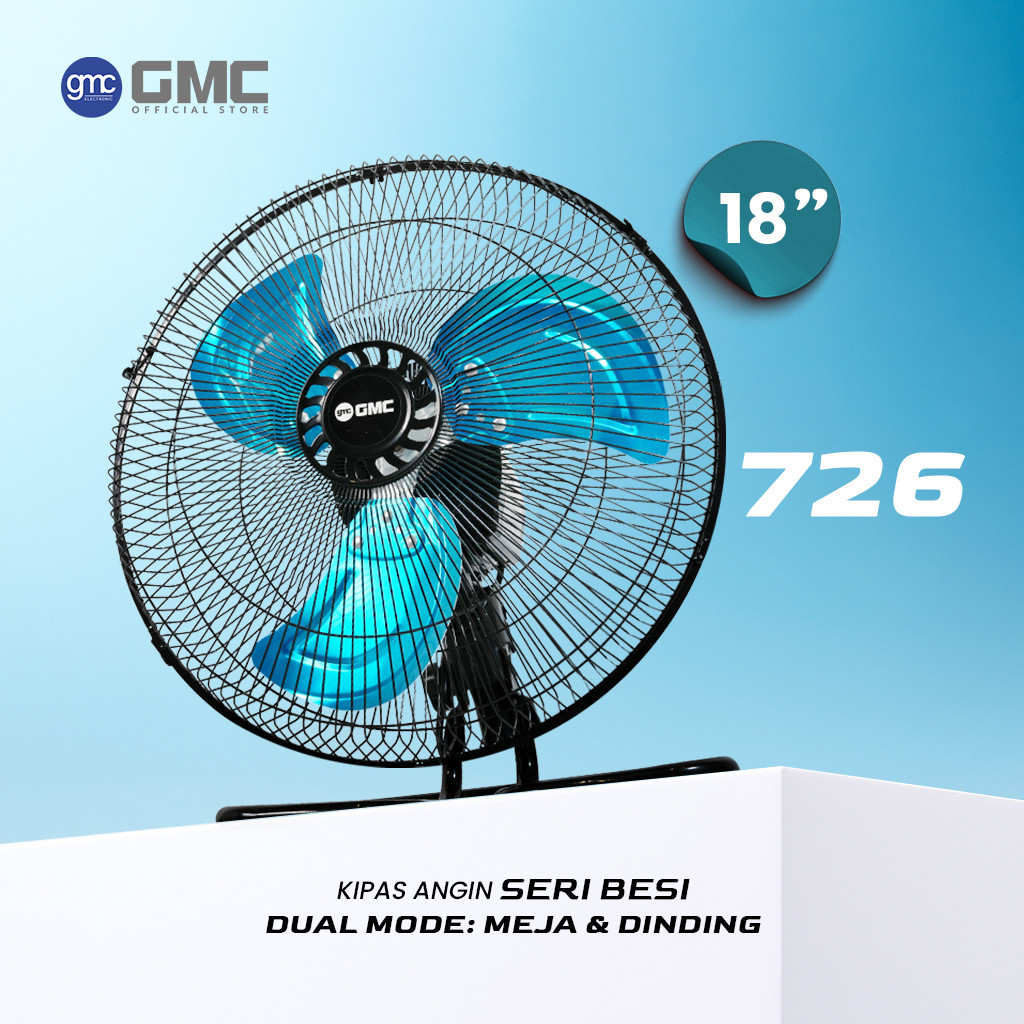 GMC Kipas Angin 726 – Seri Besi – Kipas 2in1 Lantai & Dinding 18", 80W, Baling-Baling Besi