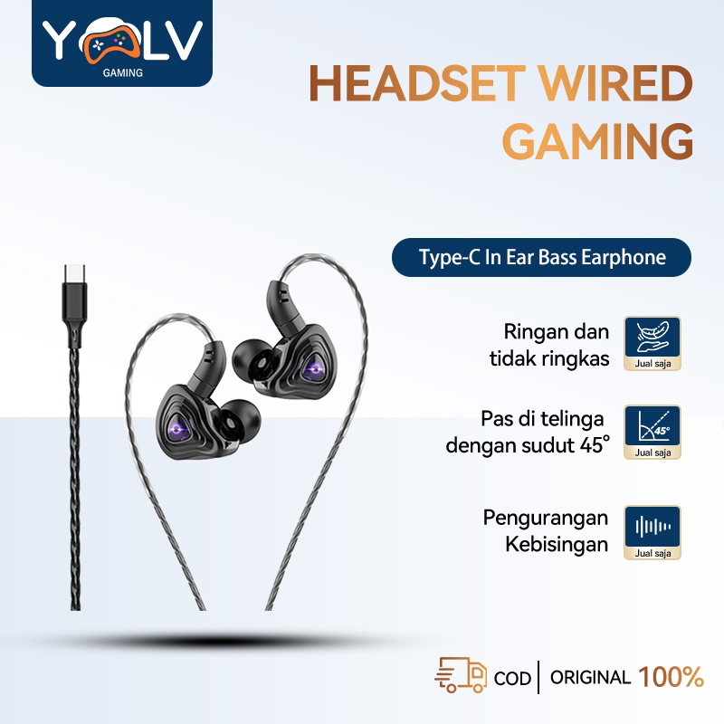 Headset Wired Gaming Music 3.5mm Type C In Ear Bass Earphone for Samsung Xiaomi PC