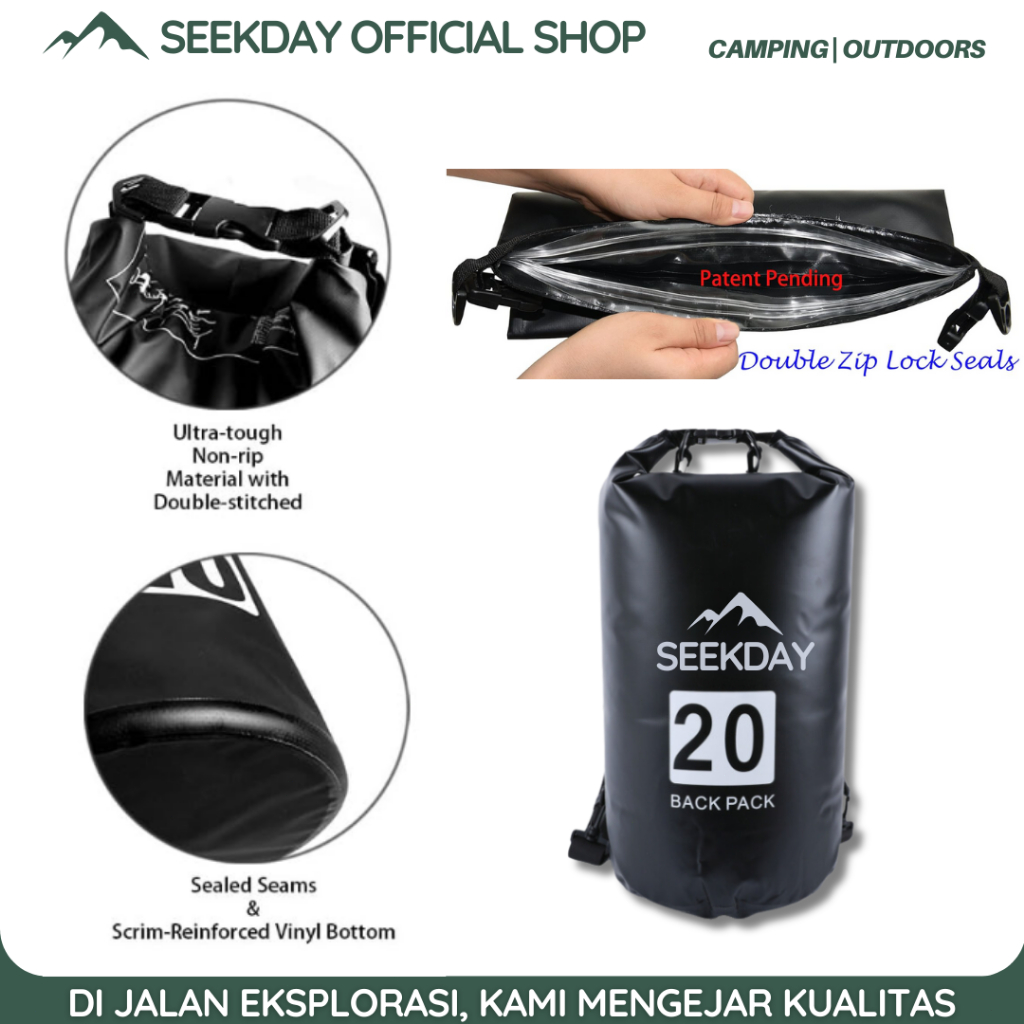 Seekday 10L/15L/20L Dry tas Outdoor Waterproof Dry bags / Tas anti air Cocok untuk pantai, kolam renang, olahraga luar r