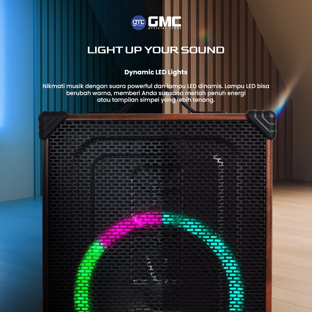 GMC Speaker 883F – Bluetooth Karaoke Speaker 8" – 95W, Lampu LED , Gratis 1 Mic Wireless + Remote
