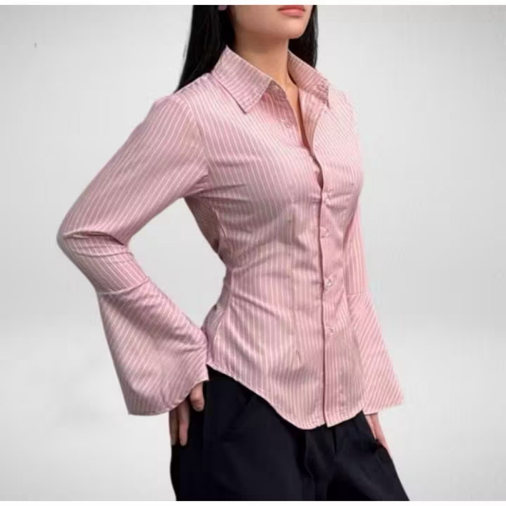 Julia Magnet Stripe Shirt Kemeja Fita Body Wanita Style Office Shirt Murah Gratis Ongkir