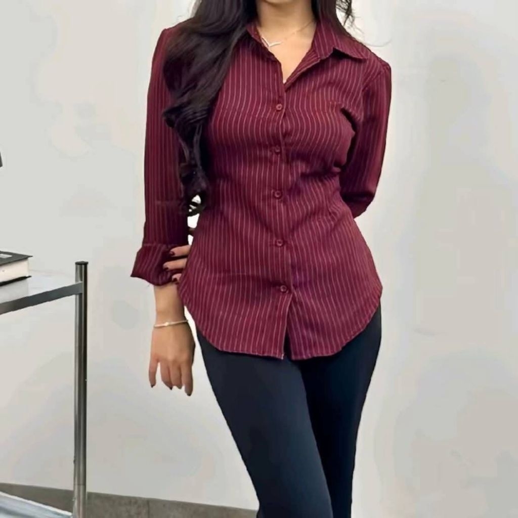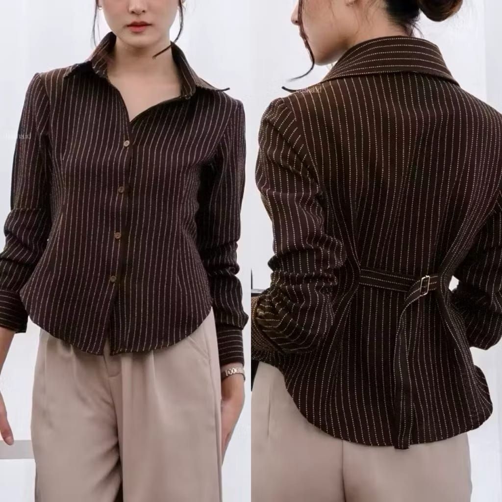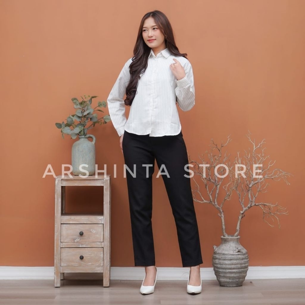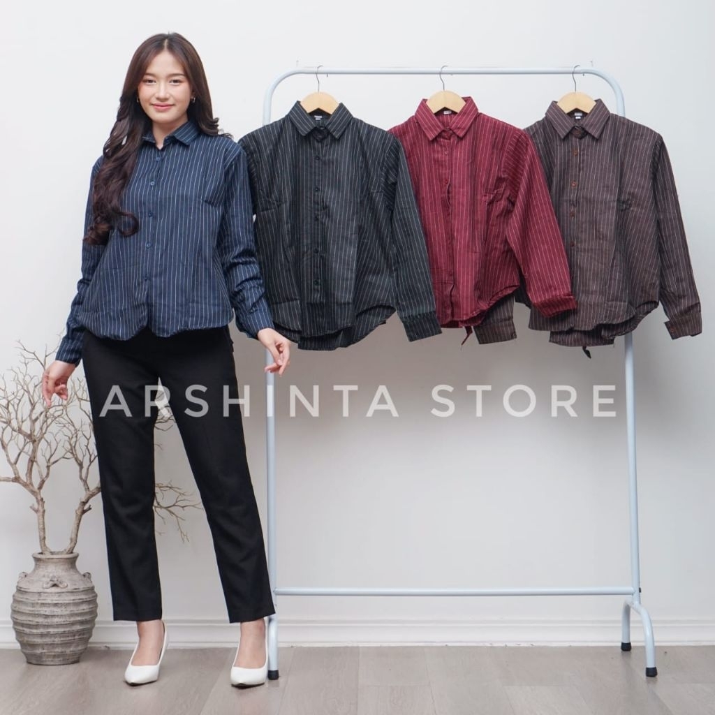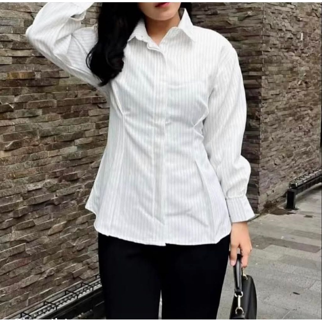 Luna Stripe Kemeja Fitted - Kemeja Wanita Fitted Stripe Salur Basic Casual Murah Gratis Ongkir