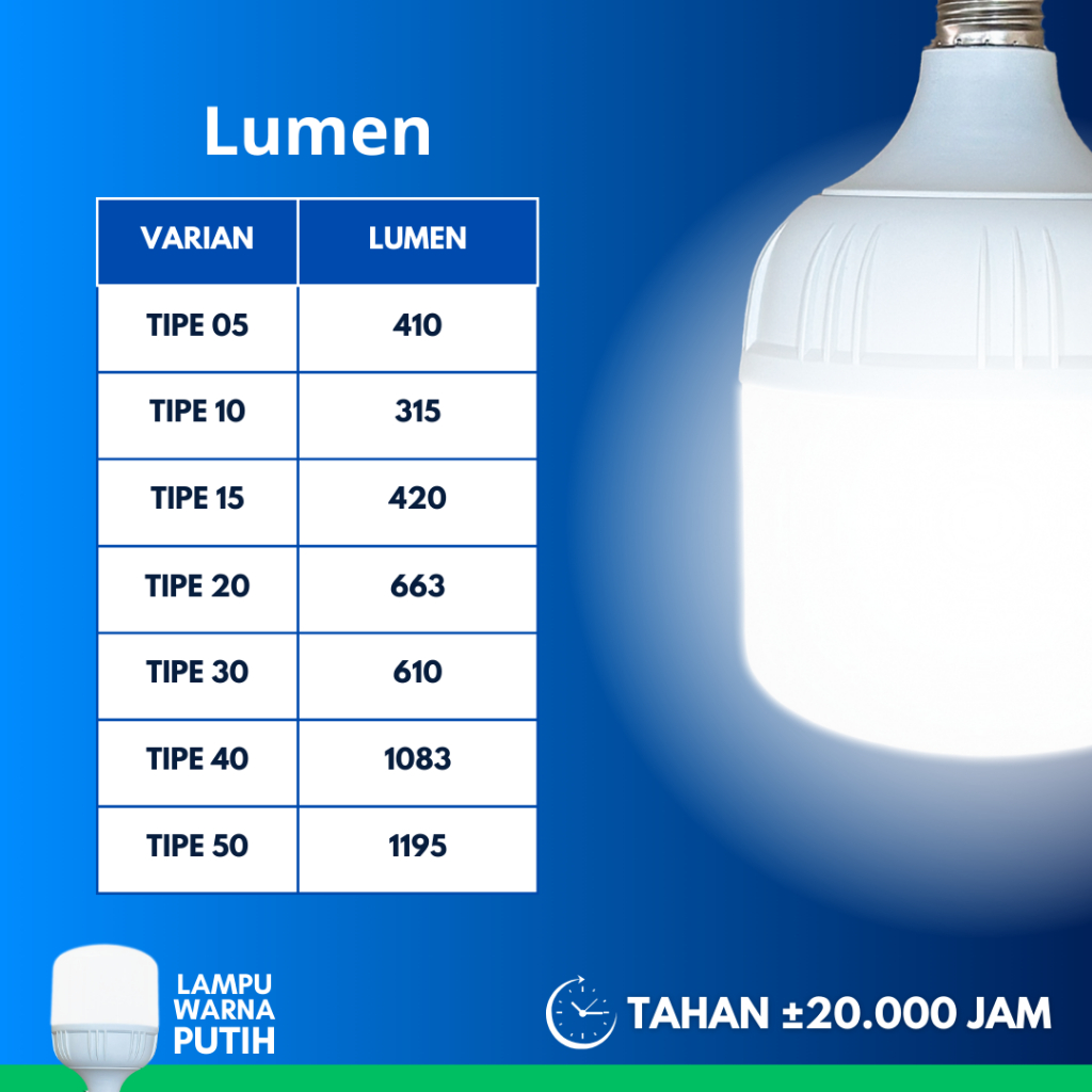 Paket Hemat 5 pcs Lampu LED Tabung Jumbo TBulb Bundling Tipe 50/40/30/20/15/10/5 Putih Terang 80 PERSEN Hemat Energi