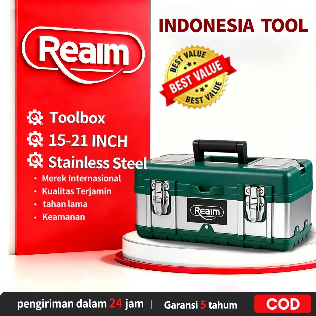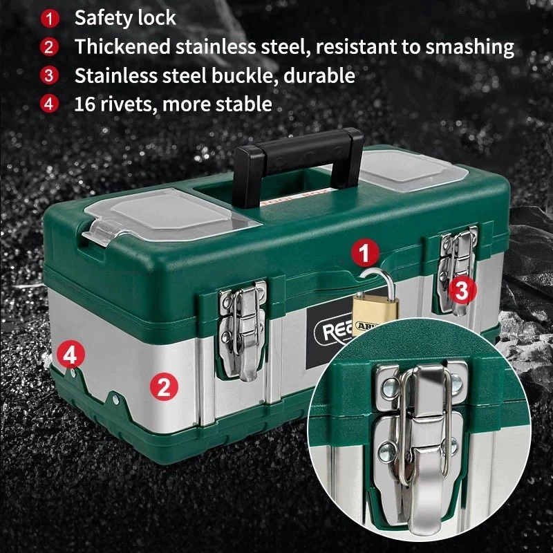 REAIM Tool Box Besar 15/18/20/21 inch Bahan PP Tool box set/2 layaer Stainless Steel Toolbox set/box kunci bengkel