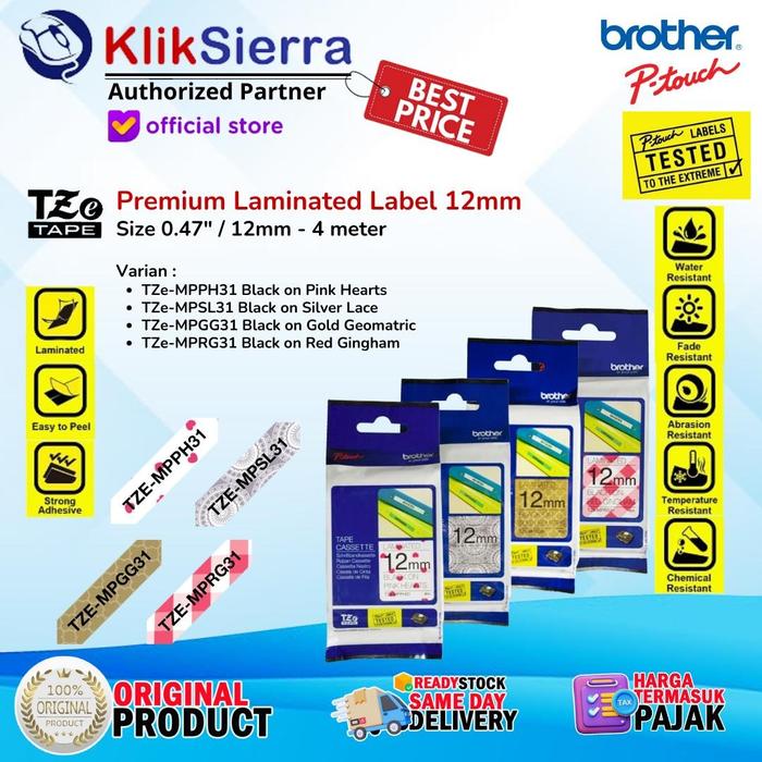 BROTHER TZe-MPPH31 MPSL31 MPGG31 MPRG31 Laminated Tape 12mm - Label Sticker Anti Air Waterproof For