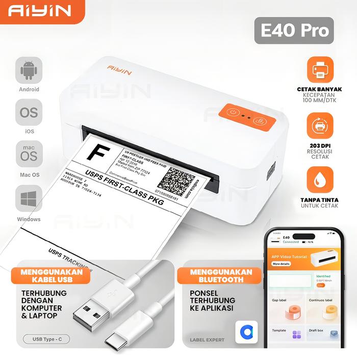 Aiyin E40 Pro - Printer Resi Label Pengiriman 110mm Online Shop 4 Inch Compact Thermal Sticker Label