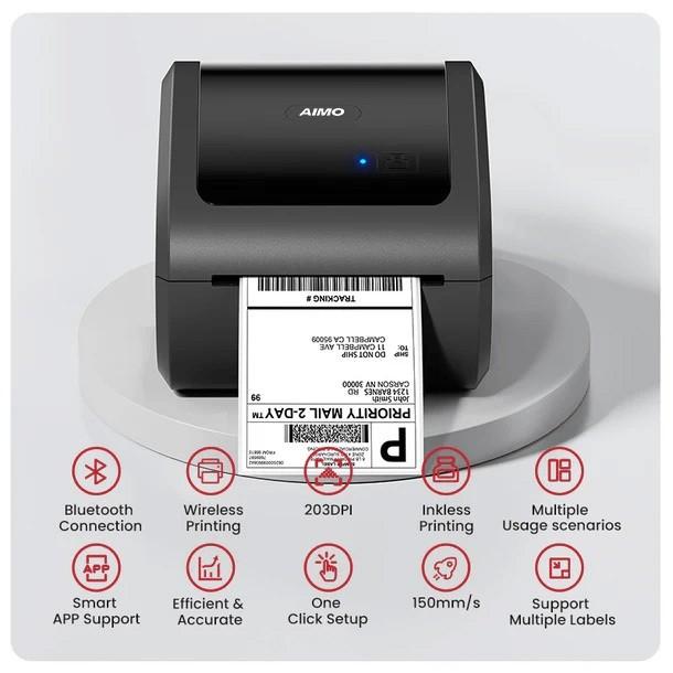 FREE KERTAS RESI 100*100 AIMO D520 PRINTER RESI BARE THERMAL LABEL 110MM A6 KONEKSI USB / BLUETOOTH
