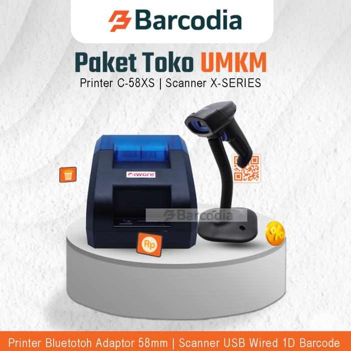 BUNDLING PAKET KASIR PRINTER BLUETOOTH + BARE SCANNER 1 DIMENSI USB