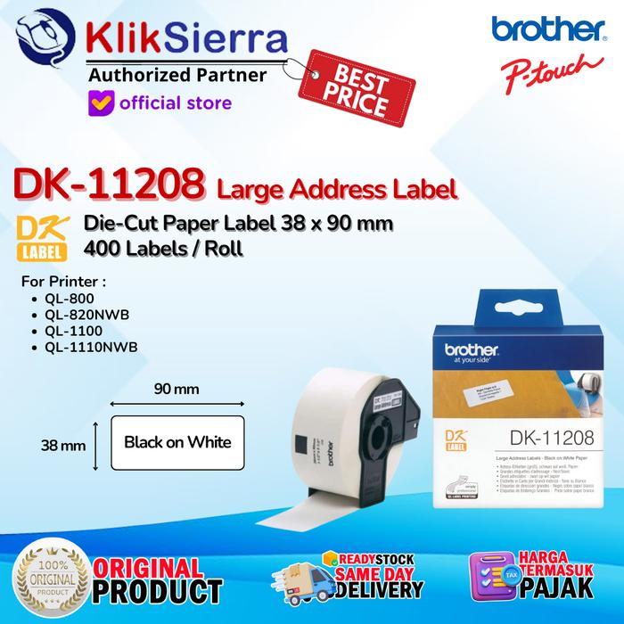 BROTHER DK-11208 DK11208 ORIGINAL Label Die Cut 38mm x 90mm Large Address Label Alamat For Printer