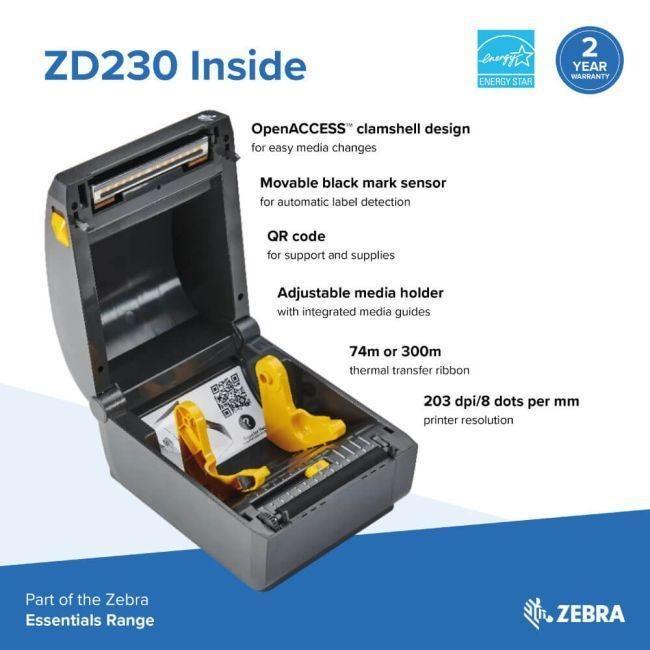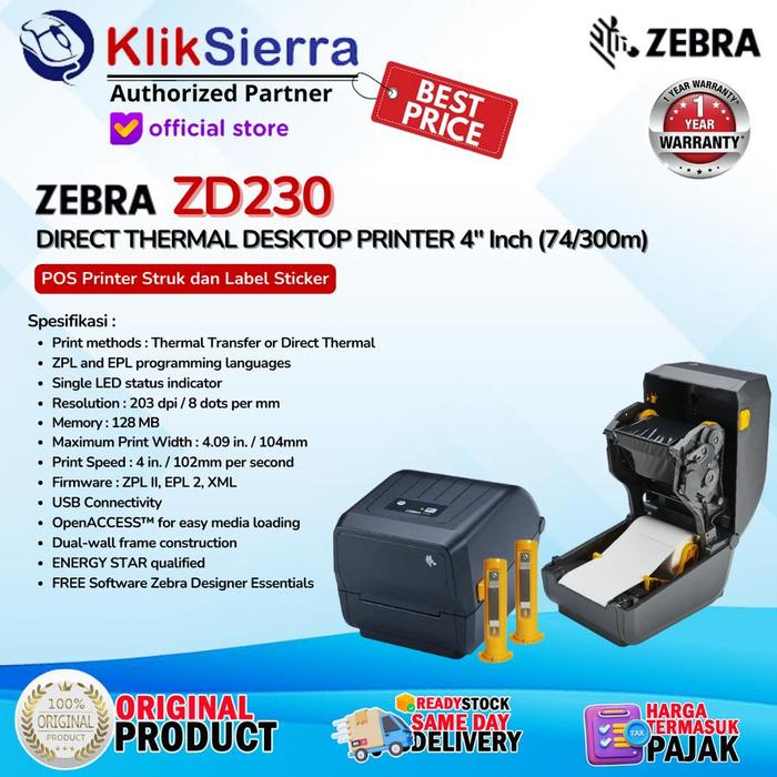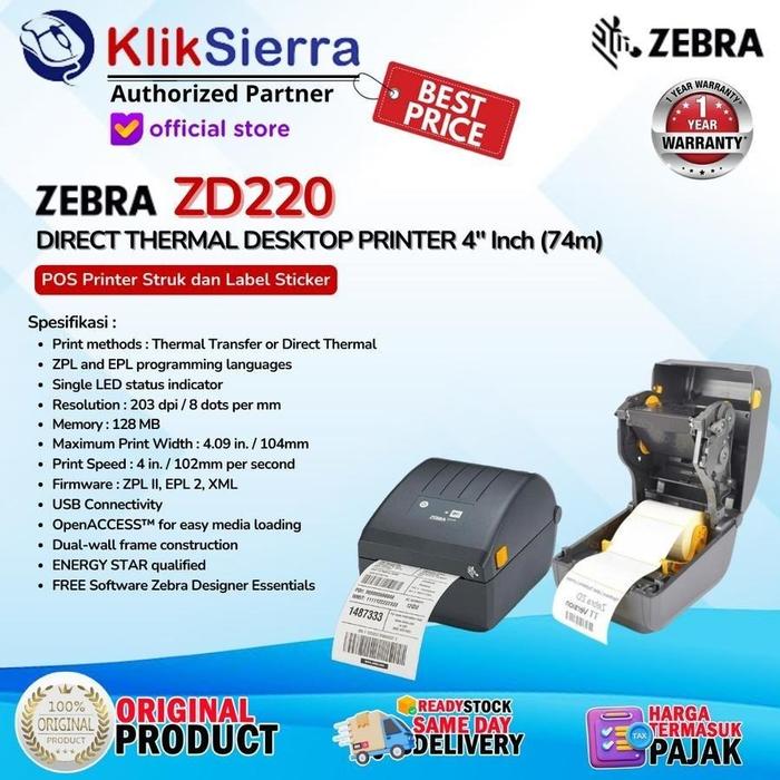 ZEBRA ZD220 ZD-220 Printer Direct Thermal Bare 4" inch 203dpi 74M - Desktop Printer Struk Thermal