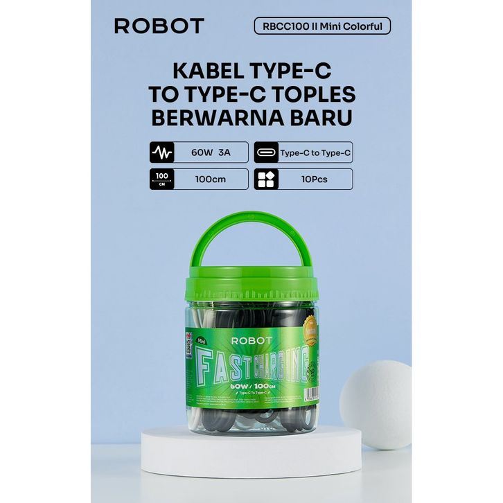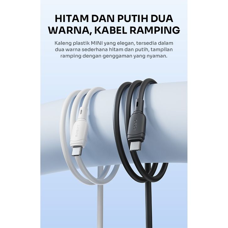 Robot Kabel Data RBM100 MINI Micro 2.1A / RBC100 Mini Type-C 2.4A / RBCC100 Mini Type-C to C 3A 60w Data Cable 100cm Or