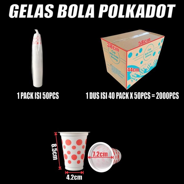 2 PACK - Gelas Bola Polkadot Tebal 3gr | Aqua uk 220ml /pack 50pcs u Kopi Teh Eskrim JSP
