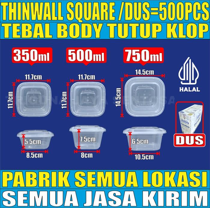 Promo Thinwall Tebal SQ 350ml 500ml 750ml Victory /Dus Kotak Makan Persegi Square JSK
