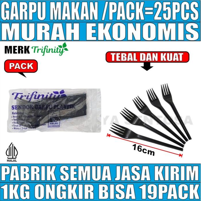 2 PACK - Garpu Makan Plastik Kuat Tebal 2.6gr Trifinity Panjang Bening / Hitam / Putih Pack JSP