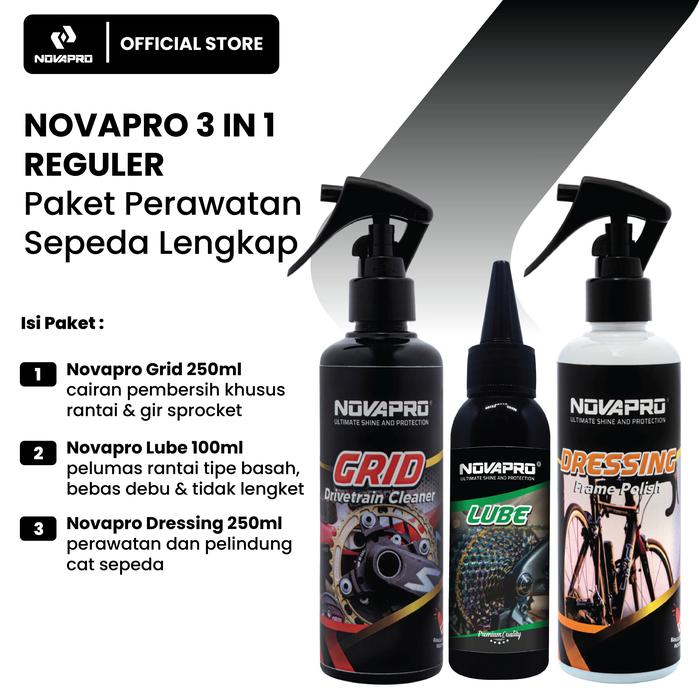 NOVAPRO Paket Perawatan Sepeda Premium 3IN1 - GRID LUBE & DRESSING Cairan Membersihkan Rantai