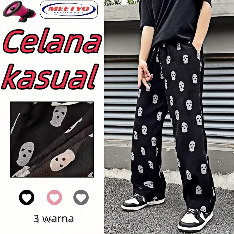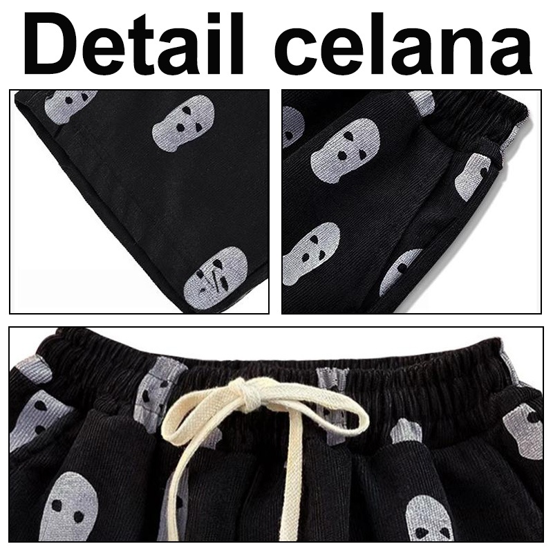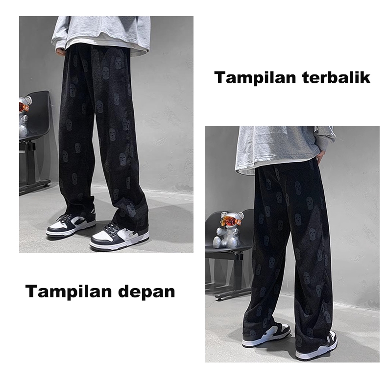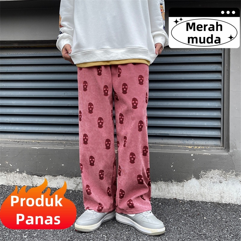 (Unisex)Celana corduroy pria/Celana panjang pria/Celana kasual/Celana baggy pants/Korean style pants/Hitam/Merah muda/Bi