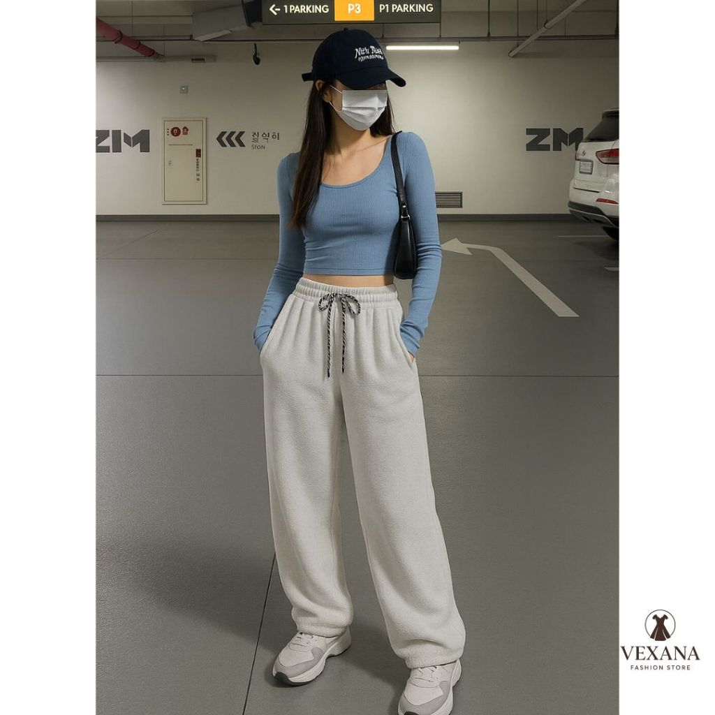[ Vexana ] Celana Sweatpants Loose Baggy Pants Wanita dan Pria Unisex Bahan Fleece Soft Lembut