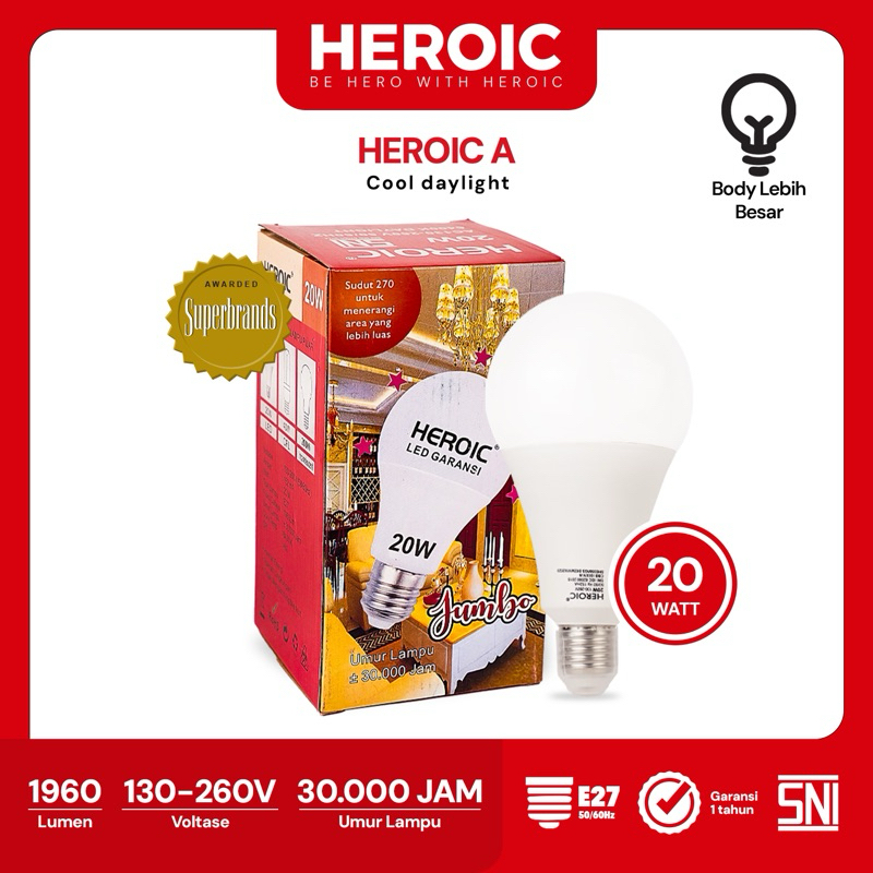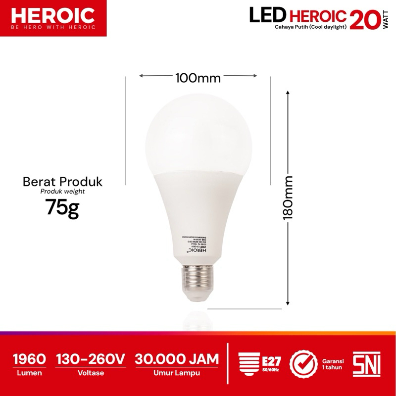 Heroic Lampu Bohlam LED A 20W Cahaya Putih Hemat Energi