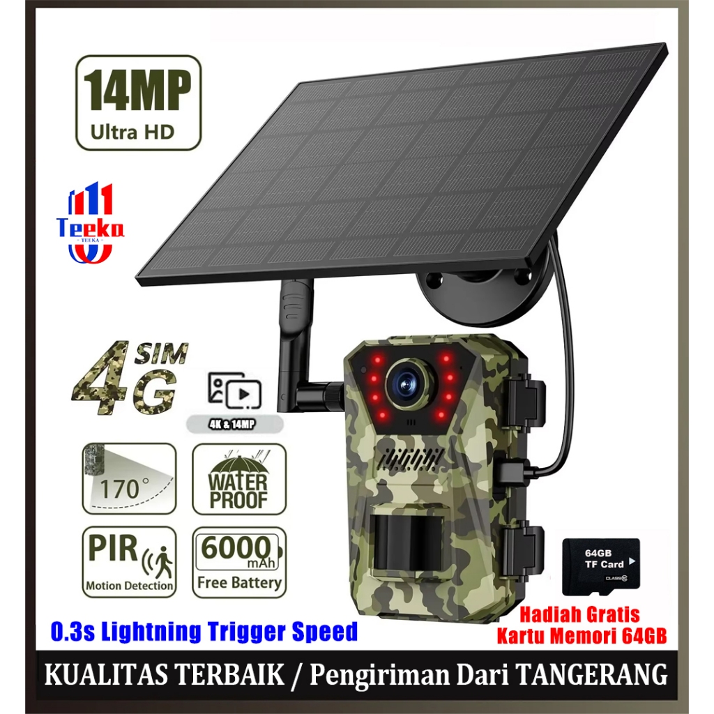 TEEKA 4K Kamera Camera Trail Pengintai Hunting Trap Hewan Liar Dengan Panel Surya F8 4G Connecting Mobile Outdoor