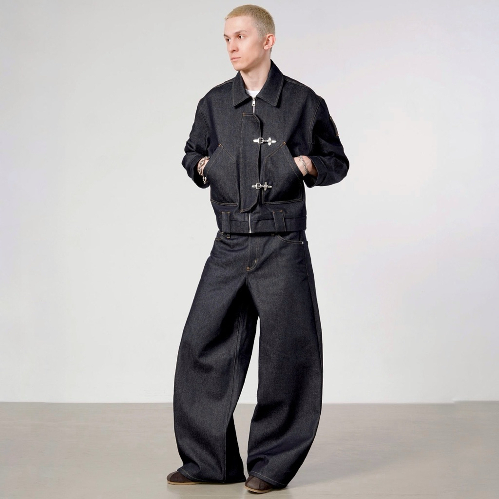 Sai - Fireman Clasps Style Work Jackets Denim Boxy Outer Jacket Denim