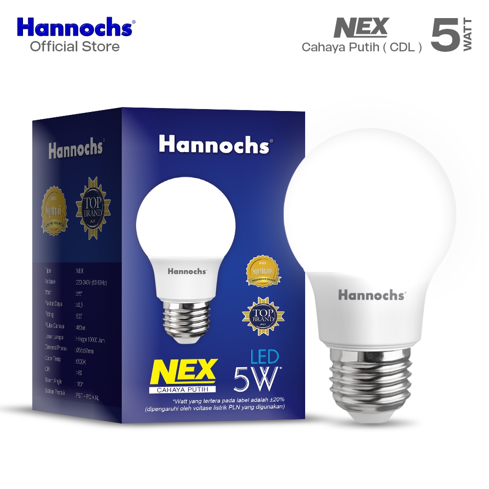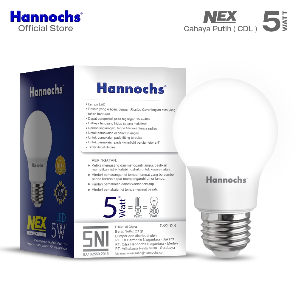 Hannochs Lampu Bohlam LED NEX 5W Cahaya Putih Paket isi 5pcs