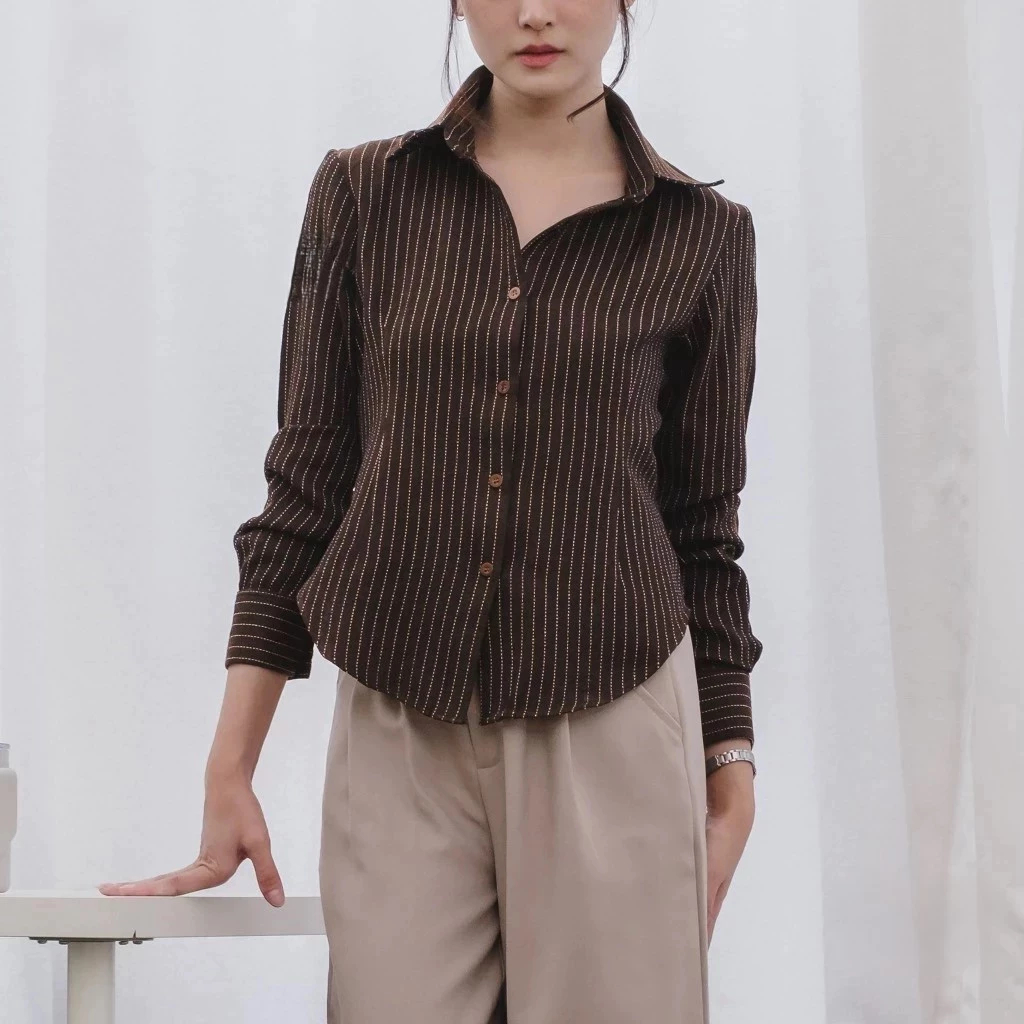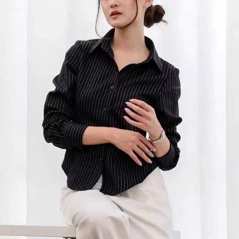 Kemeja Wanita Fitted Luna Stripe Atasan Salur Korean Style Terbaru Murah Gratis Ongkir