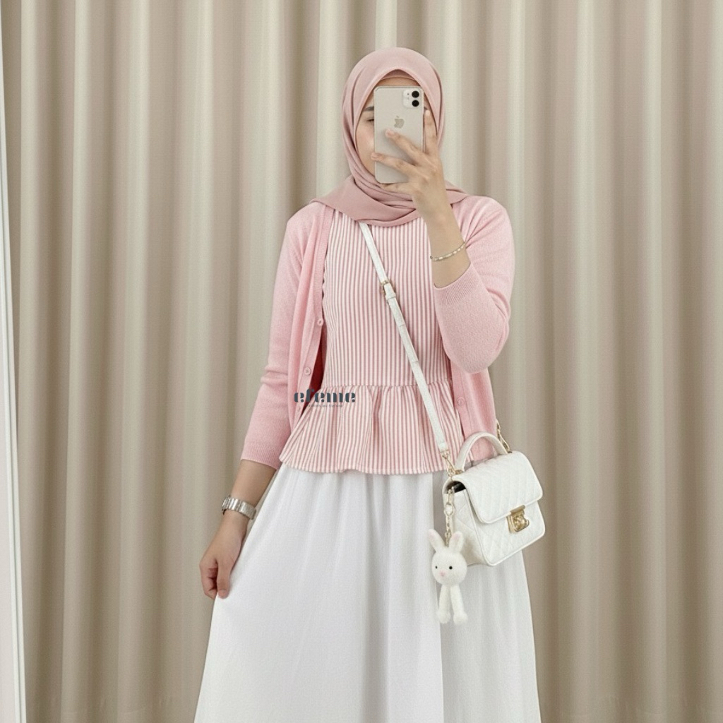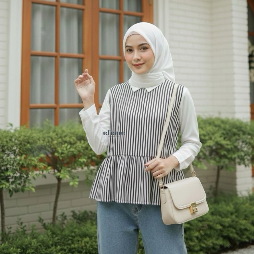 Efeme - Amora Vest Inner Peplum-Top Inner Cardigan Stripe Rompi Top Atasan Wanita Korean Style Katun Murah Gratis Ongkir