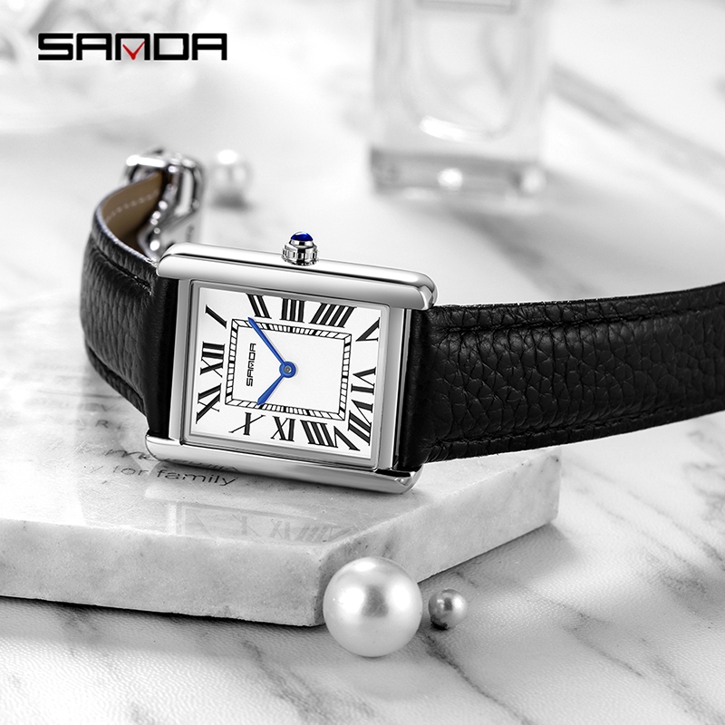 Sanda 1108 Jam Tangan Pria Wanita Analog Medium Size Retro Style Tali Kulit Quartz